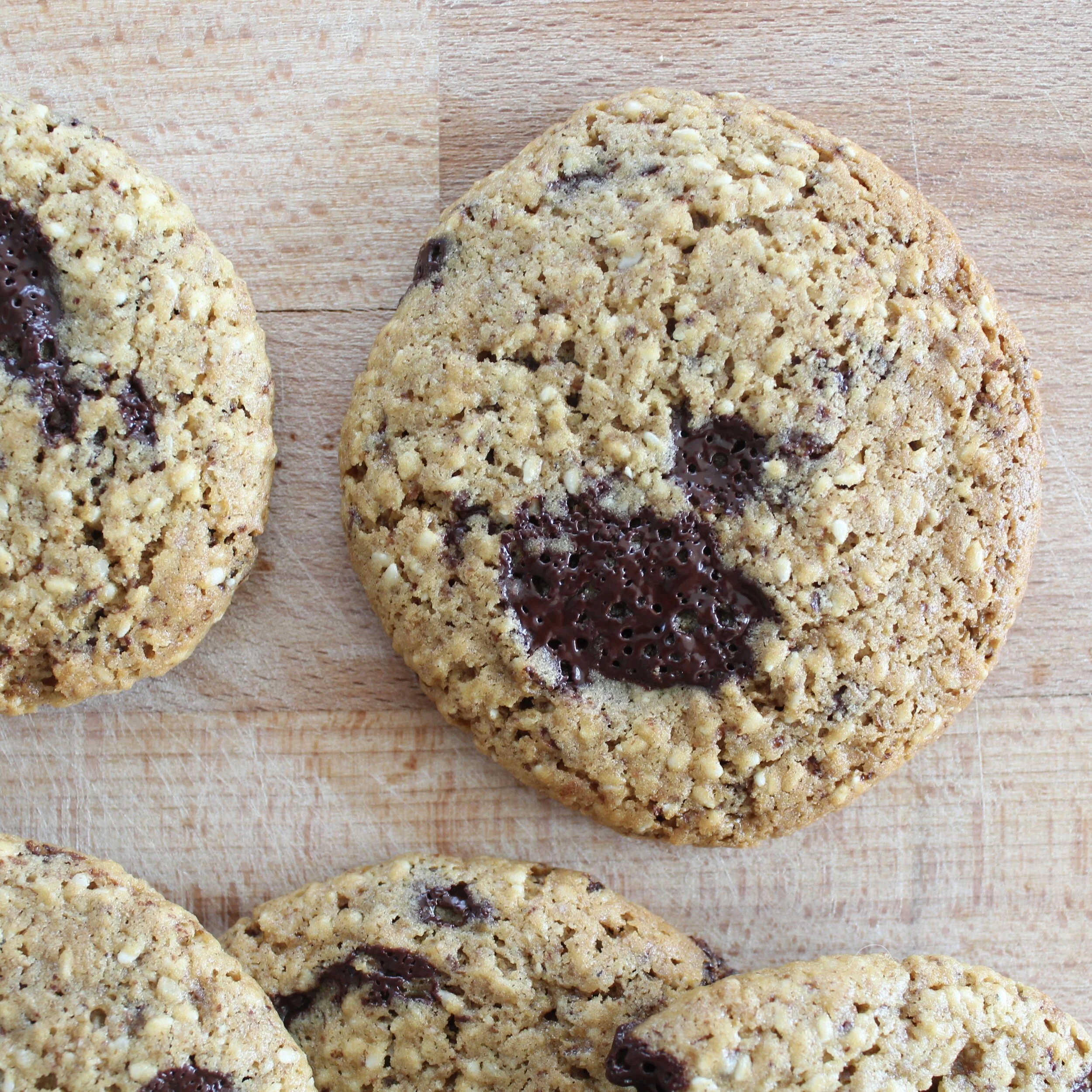Dans ces cookies, j’y ajouté des graines de sésame et de l’amande moulue, désirant simplement les rendre plus nutritifs avec des fibres, des bonnes graisses et, bien entendu, des nutriments qui les accompagnent. Depuis maintenant 1 année, je mets régulièrement des graines de sésame dans mon pain au levain maison adorant leurs goûts grillés qui est “addictif”. Qui n’a jamais goûté les barres de sésame au miel ? Riches en vitamine E, antioxydante, et en calcium, ces petites graines sont des miracles de la nature. La farine d’engrain qui les composent, communément appelée farine de petit épeautre, les rends un peu plus digeste puisque la teneur en gluten est minime. Avec de bons et gros morceaux de chocolat noir avec 80% de cacao, les rendant gourmands et, par la même occasion, nutritifs et sains !
