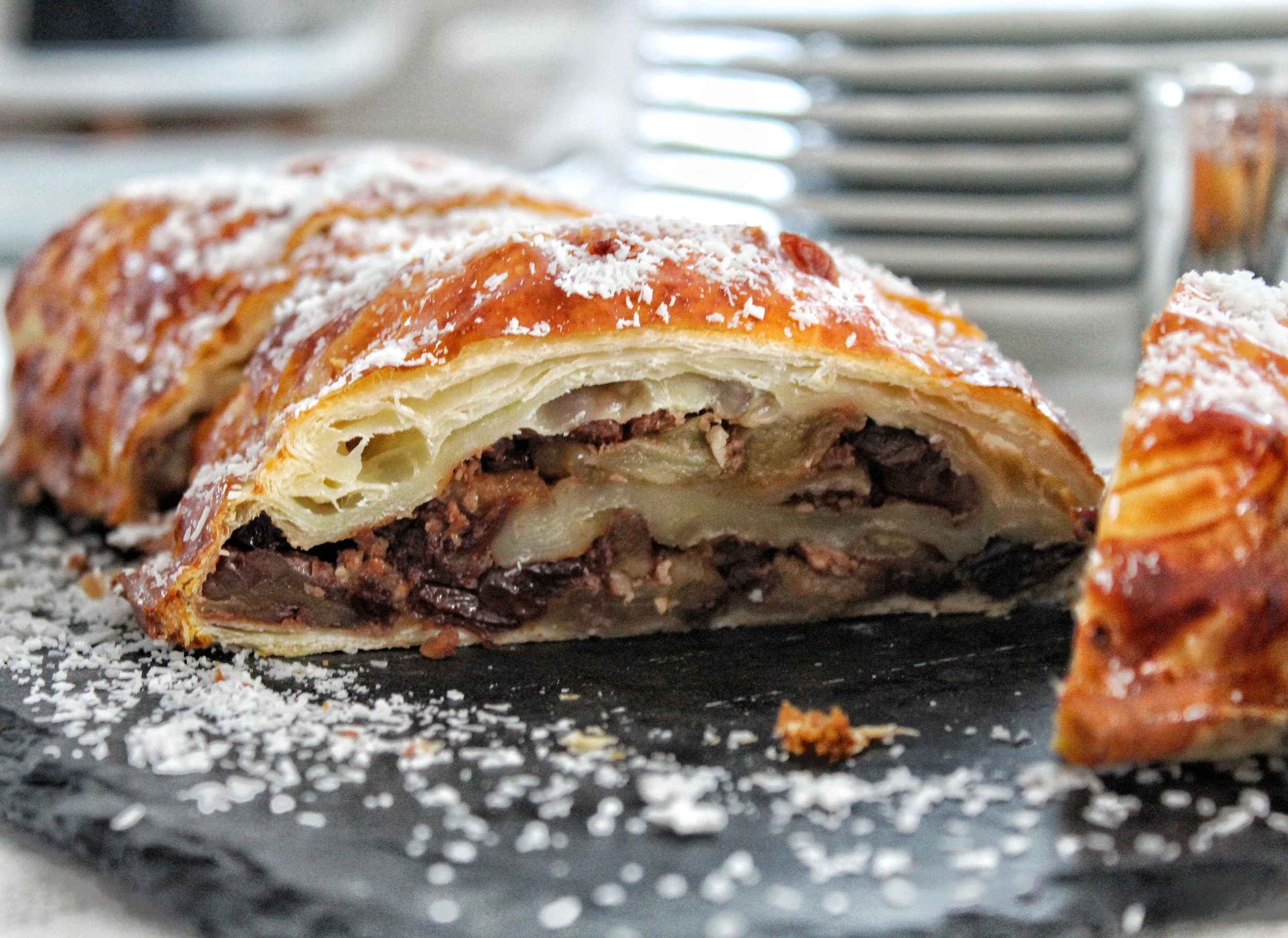 Battez le jaune d’œuf avec un peu d’eau et enduisez-en le strudel.