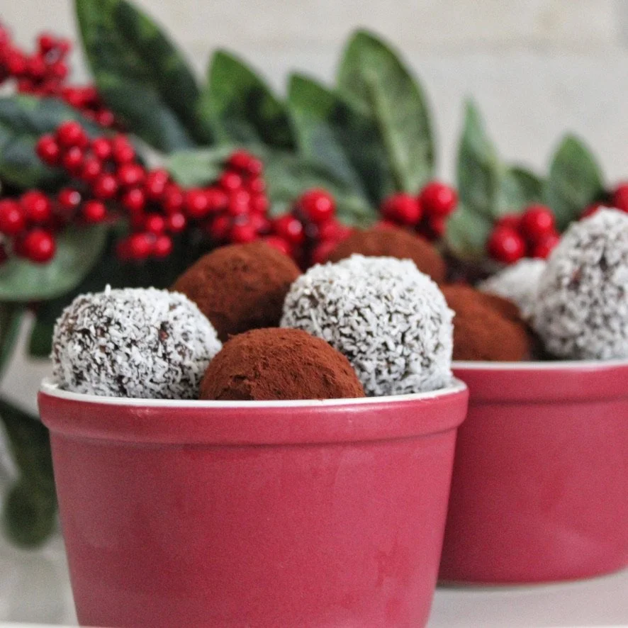 Enrobez chaque truffe dans l’aliments choisi : noix de coco et cacao.